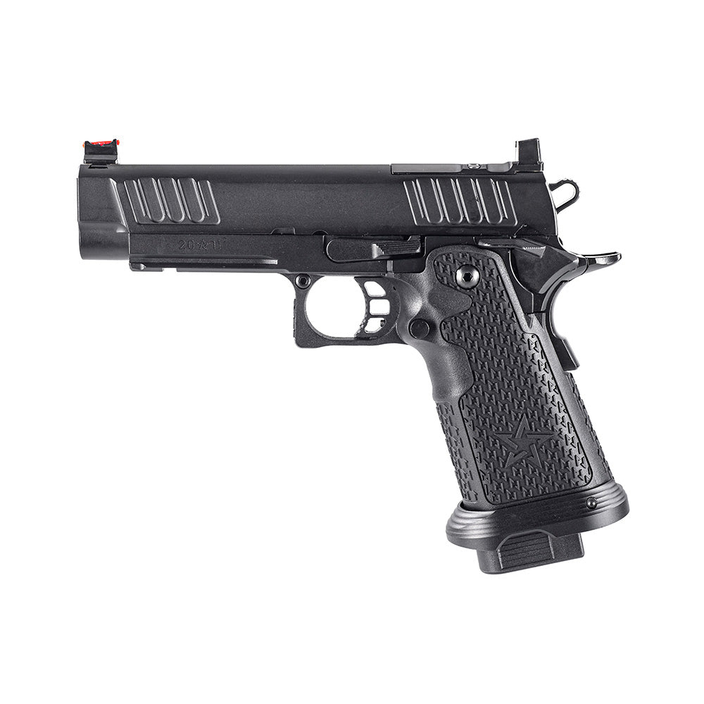 Staccato P 為最新版尺寸修訂正確版本,整體比例更貼近真實規格,定位於全尺寸競技取向 2011 平台。由 SAVIA 代工、EMG × Staccato 官方授權,提供 一般版/STI 版/CNC 版 多種配置,滿足競技、實用與收藏需求。