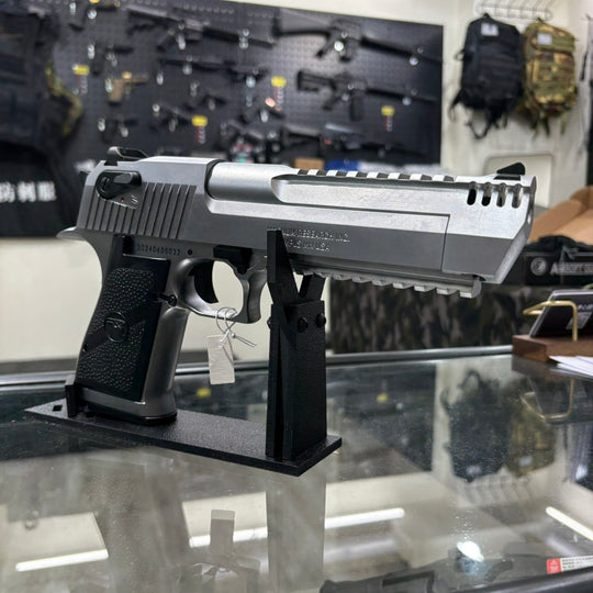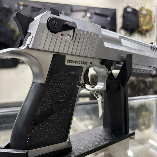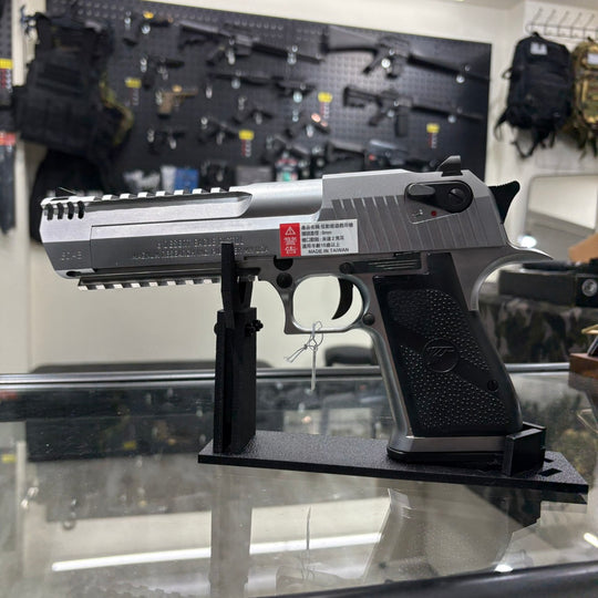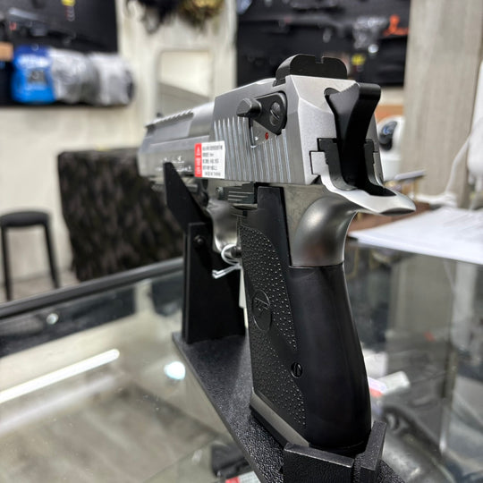 WE Desert Eagle .50AE — 沙漠之鷹 瓦斯手槍(銀色,授權刻字版) CYBERGUN 正式授權刻字版。戰術魚骨導軌設計,金屬與塑料混合材質,外觀沉穩有份量感。 規格 尺寸:長約 270 mm 重量:約 1340 g 材質:金屬 / 塑膠 動力:瓦斯(Gas) 射擊模式:保險 / 半自動(Semi-automatic) 彈匣容量:27 發(6 mm BB) 子彈類型:6 mm BB 初速:約 90–100 m/s English Version WE...原價 $4,700.00原價 $4,700.00 -