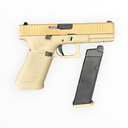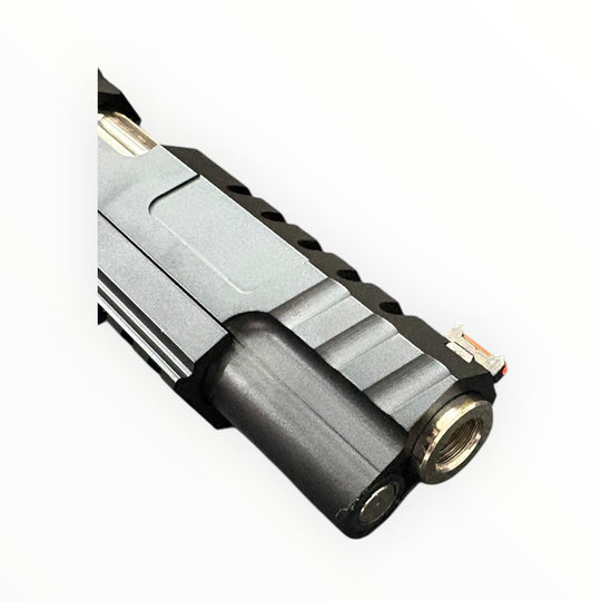 Golden Eagle金鷹HI-CAPA 5.1 3336 CNC滑套Marui規格瓦斯短槍手槍 * 同KJ WE規格 維修免煩惱* 金屬滑套、槍管、槍身前段* 高強度聚合物握把* 全CNC製成簍空鋁合金滑套,上下身公差緊密* 槍管採電鍍金色跳色處理* 不跌管設計,性能更加穩定* 握把特殊紋理處理,扳機護弓處指槽加工,提供極佳的持握手感* 內帶光纖準星* 帶有虎口保險* 帶有拇指保險(拇指保險需在擊槌為待發位置時才可開啟)* 加大握把襯裙、加大彈匣底板* 滑套射擊時自動復位,有無彈後定功能* 可兼容市面上多數HI-CAPA零配件、彈匣(Marui規格)* 下身帶20mm魚骨軌道,可安裝槍燈或雷射 ————————————————————— 產品規格 * 品牌:Golden Eagle* 原廠編號:3336* 口徑:6mm * 動力:瓦斯* 初速:90±5 m/s* 長度:222mm * 重量:646g * 裝彈數:25發 * 材質:金屬滑套、槍管、槍身前段/聚合物握把*...原價 $3,480.00原價 $3,480.00