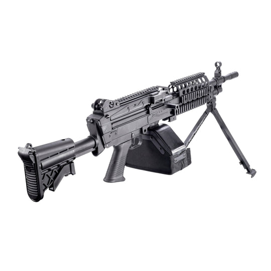 HWASAN M249 PARA AEG 機槍 — 電動長槍HWASAN M249 PARA AEG Machine Gun — Electric Rifle 中文說明:HWASAN M249 PARA 電動機槍,採高強度聚合物槍身與鋁合金外管,重量更輕便且耐用。頂部與下身配備多面 20mm 魚骨導軌,可安裝瞄具、握把、槍燈、雷射等戰術配件。搭載鋼齒二代齒輪箱,隨槍附帶聲控彈鼓,並兼容 M4 AEG 彈匣。內建摺疊腳架與 PARA 機械式伸縮尾托,支援半自動與全自動射擊模式,適合生存遊戲與戰術模擬。 English Description:The HWASAN M249 PARA AEG features a high-strength polymer...原價 $6,800.00原價 $6,800.00 -