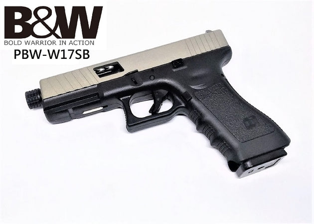 海神 Poseidon B&W G17/H17銀色滑套+黑色槍管+黑色下槍身 瓦斯手槍 波浪版