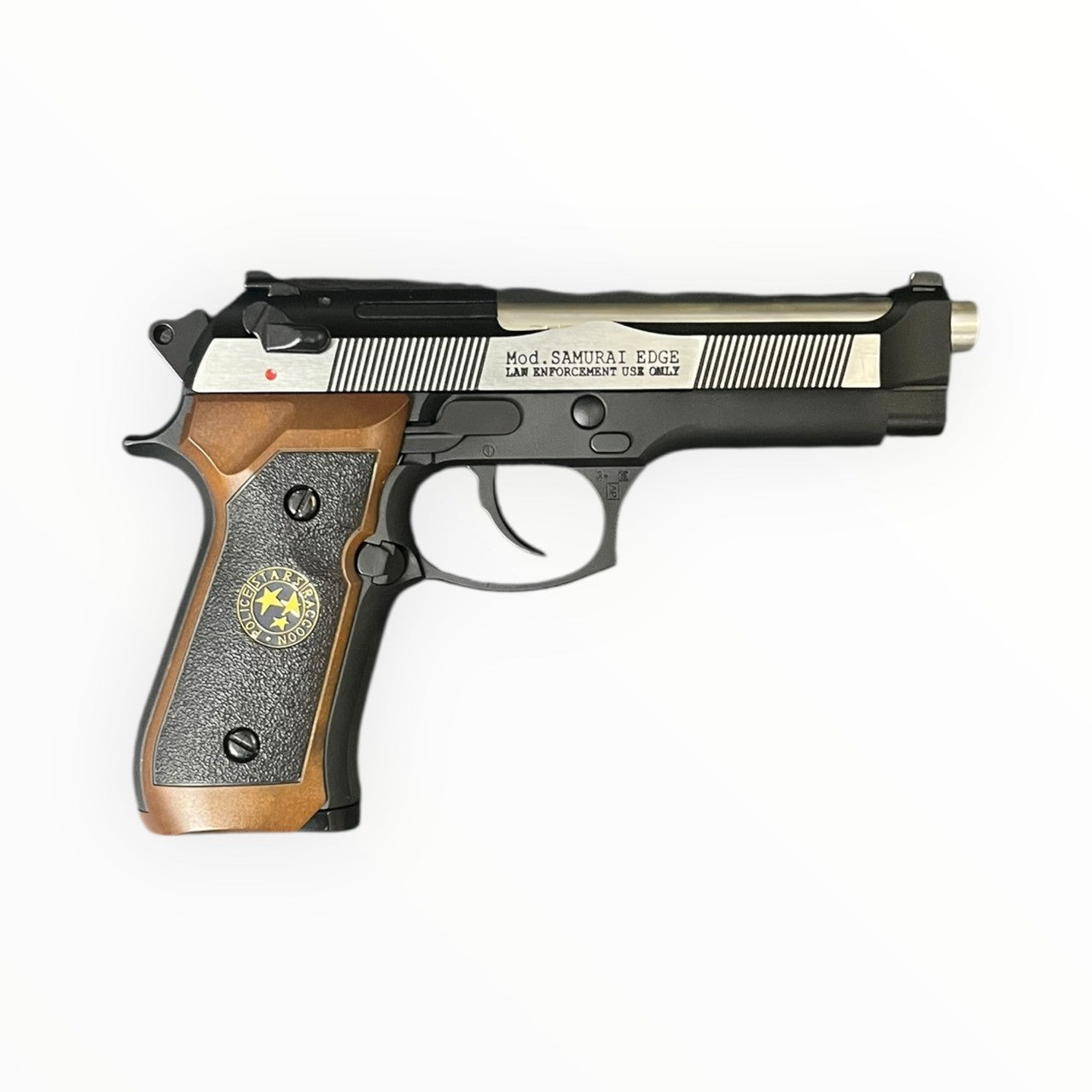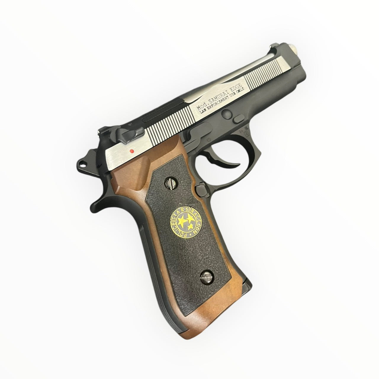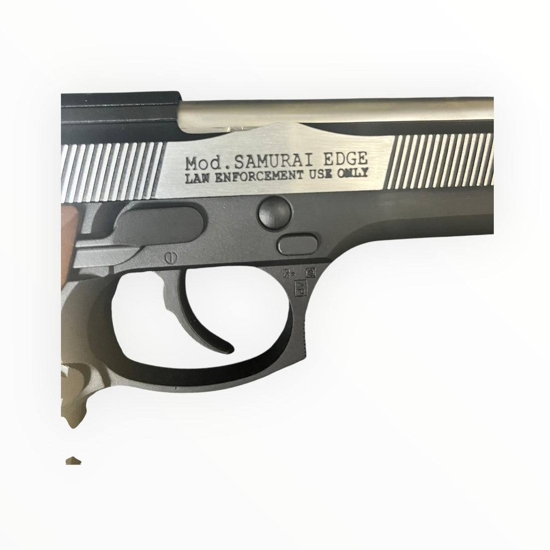 拋光外觀全金屬 WE M9,滑套可動並具覆進(Blowback)效果,射擊手感扎實。支援瓦斯動力(另有 CO₂ 版本)。適合生存遊戲、訓練或收藏。請遵守當地法規與場地規定。