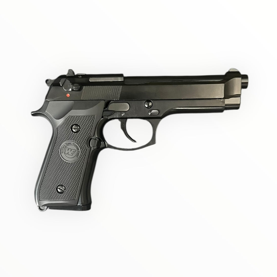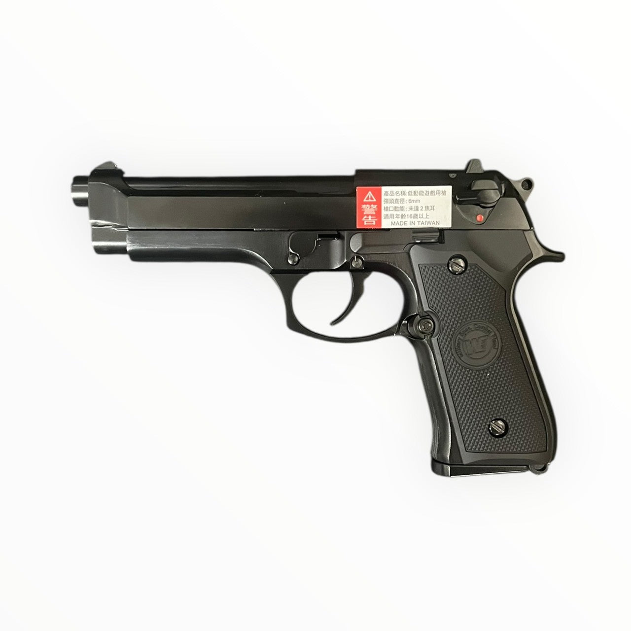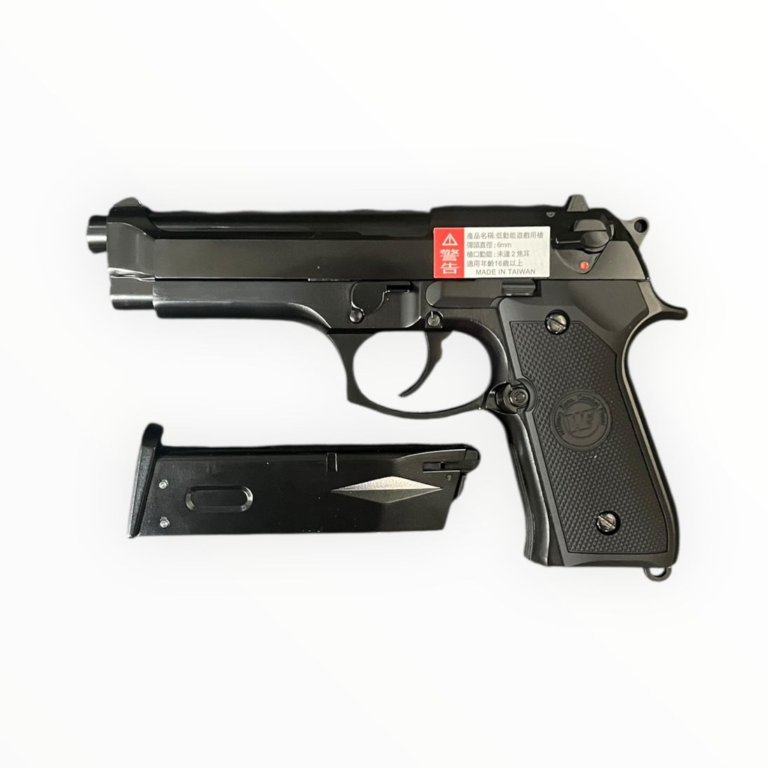 WE M9A1 彩盒版,金屬滑套與金屬槍身,採用可調式 HOP-UP 系統與獨立拋殼勾設計。滑套可動、射擊時覆進,手感紮實。適合生存遊戲、訓練或收藏。使用與運輸請遵守當地法規與場地規定。