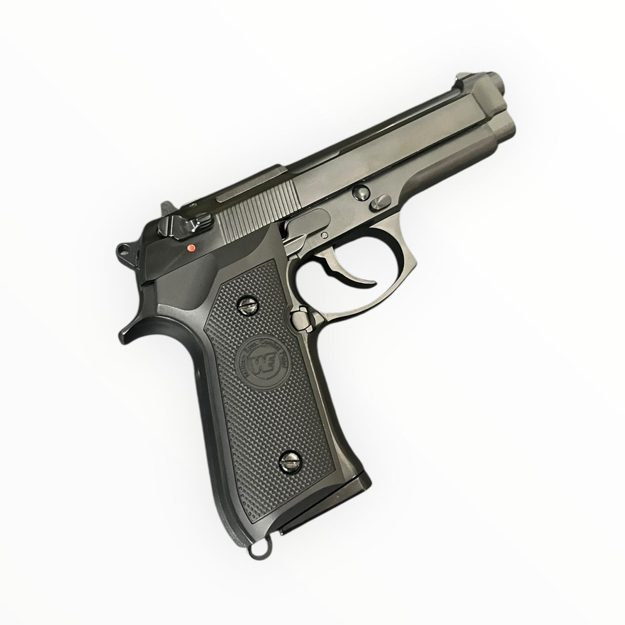 WE M9A1 boxed edition with metal slide and metal frame. Features an adjustable HOP-UP system and independent extractor design. Moving slide with blowback cycling for solid recoil feel. Suitable for airsoft, training, or collecting. Always comply with local laws and field rules.
