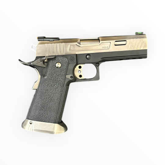 中文說明:仿真 Hi-Capa 5.1 短槍,鋁合金滑套與霧銀拉絲外觀,支援 MOS 直裝 RMR 紅點。雙系統兼容瓦斯/CO₂ 彈匣,適用生存遊戲、訓練、道具或收藏。請遵守當地法規與場地規定。 English Description:Realistic Hi-Capa 5.1 compact pistol with aluminum alloy slide and brushed silver finish. MOS-ready for direct RMR red-dot mounting. Dual-system compatible with gas or optional CO₂...Regular price $2,580.00Regular price $2,580.00 -