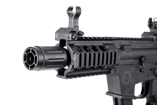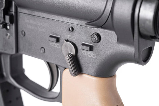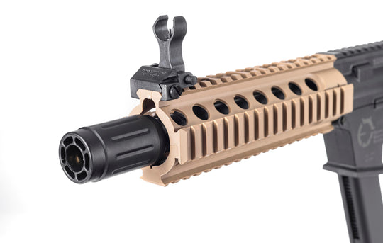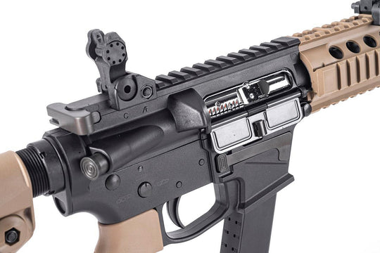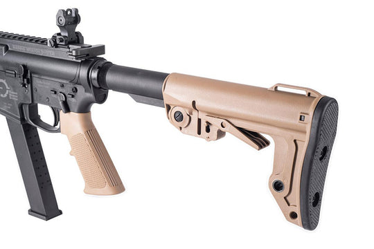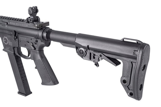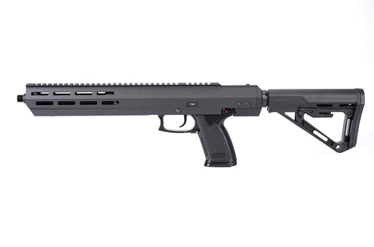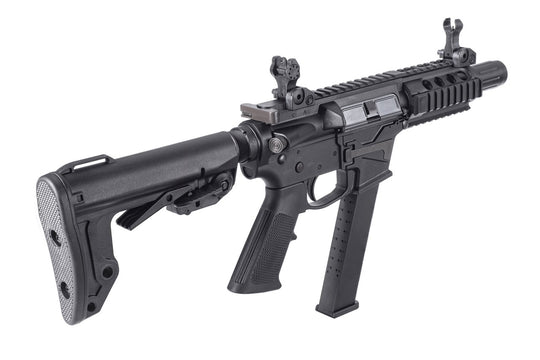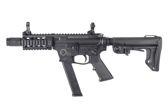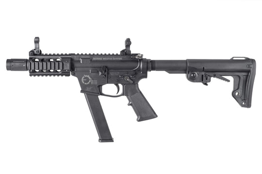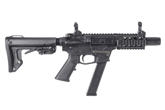 KING ARMS PPC TWS9 PCC 運動型 GBB 卡賓瓦斯槍 廠牌:KING ARMS系列:TWS系統:GBB 瓦斯後座力系統(AR 類 WA 架構)口徑:6mm BB動力:瓦斯 產品定位與特色TWS9 採用目前最受歡迎的 PCC 手槍彈卡賓外型使用 Marui 系統彈匣,彈匣兼容性極高主副武器可共用彈匣,後勤配置靈活具備擬真後座力與仿真拆卸結構AR 類火控與操作邏輯,使用直覺、零件選擇多元運動版配置高強度聚合物上下槍身與護木輕量化設計,下場操作負擔低以親民價格即可體驗 TWS 系列強勁後座力與打擊感 外觀與結構金屬槍管與金屬槍機高強度聚合物上下槍身與護木空槍重量約 2280 g折疊式準星與瞻孔槍口採 14mm CCW 逆牙,隨槍附 ABS 造型火帽護木配置四面 20mm 魚骨軌道,可安裝握把、槍燈或雷射 強化零件配置鋼製網球拍式槍機釋放鈕鋼製切氣片鋼製氣閥擊針槍機後定處配置鋼製補強件電鍍處理槍機表面,提升耐用度 射擊與彈匣射擊模式...Regular price $6,160.00Regular price $6,160.00 -