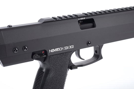 Novritsch SSX303 靜音型直壓式瓦斯氣動槍 MK23 平台 CQB/狙擊 NBB 廠牌:Novritsch型號:SSX303系統:NBB 直壓式瓦斯系統(MK23 平台)口徑:6mm BB動力:瓦斯 核心特色SSX303 被公認為目前最安靜的氣動步槍之一滑套無作動設計,射擊聲極低,不易暴露射擊位置半自動射擊模式,反應快速、穩定設計可兼顧狙擊步槍、突擊步槍與 CQB 室內作戰用途高精度設計,特別適合使用重型 BB 彈可在低溫環境下穩定射擊 結構與操作全槍 CNC 鋁合金槍身,輕量且剛性高免工具 Hop Up 調整設計,採 TDC 轉輪結構,調整快速直覺能量輸出穩定,範圍約 0.8J 至 2.5JM-LOK 護木設計,擴充性高槍口採 14mm CCW 逆牙,可安裝抑制器、發光器等配件 彈匣相容性相容 SSX23 瓦斯彈匣相容 Y&P...Regular price $10,400.00Regular price $10,400.00 -