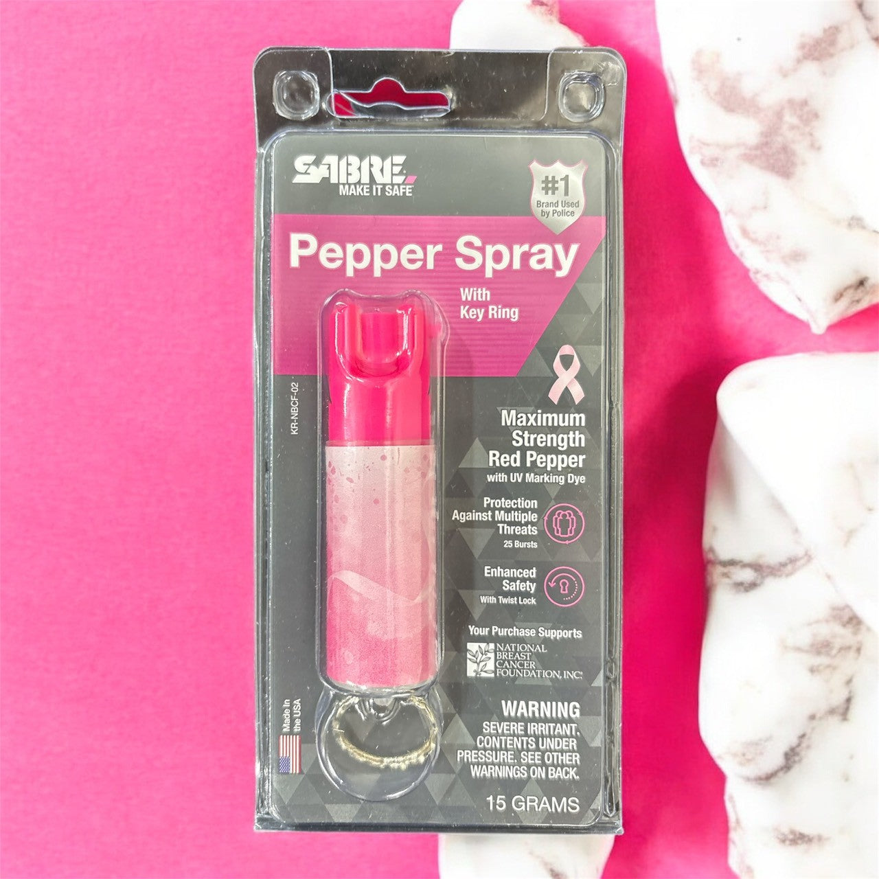 【美國 SABRE 沙豹】輕量粉紅鑰匙圈防身噴劑 KR-NBCF-02
