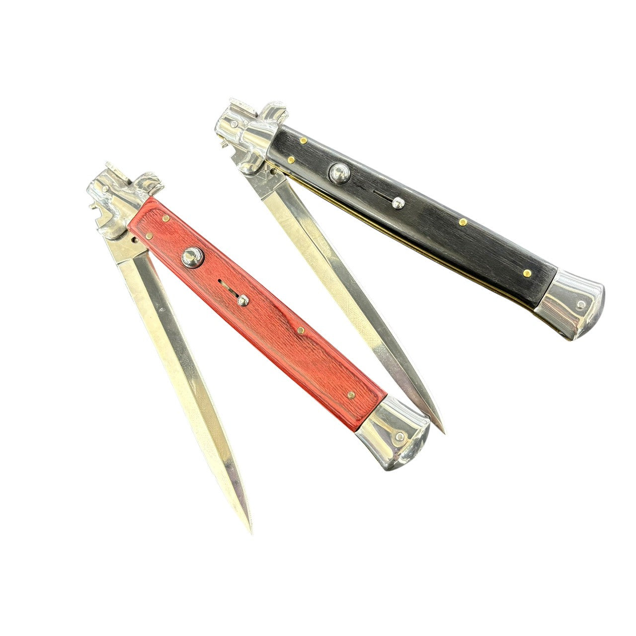 ZX International Classic Italian Style Switchblade (Black / Redwood Handle)