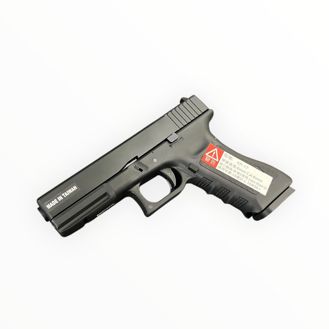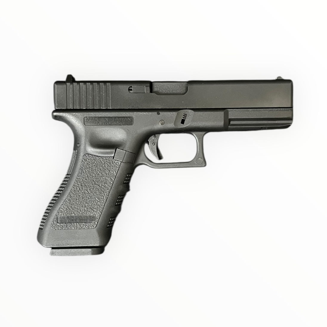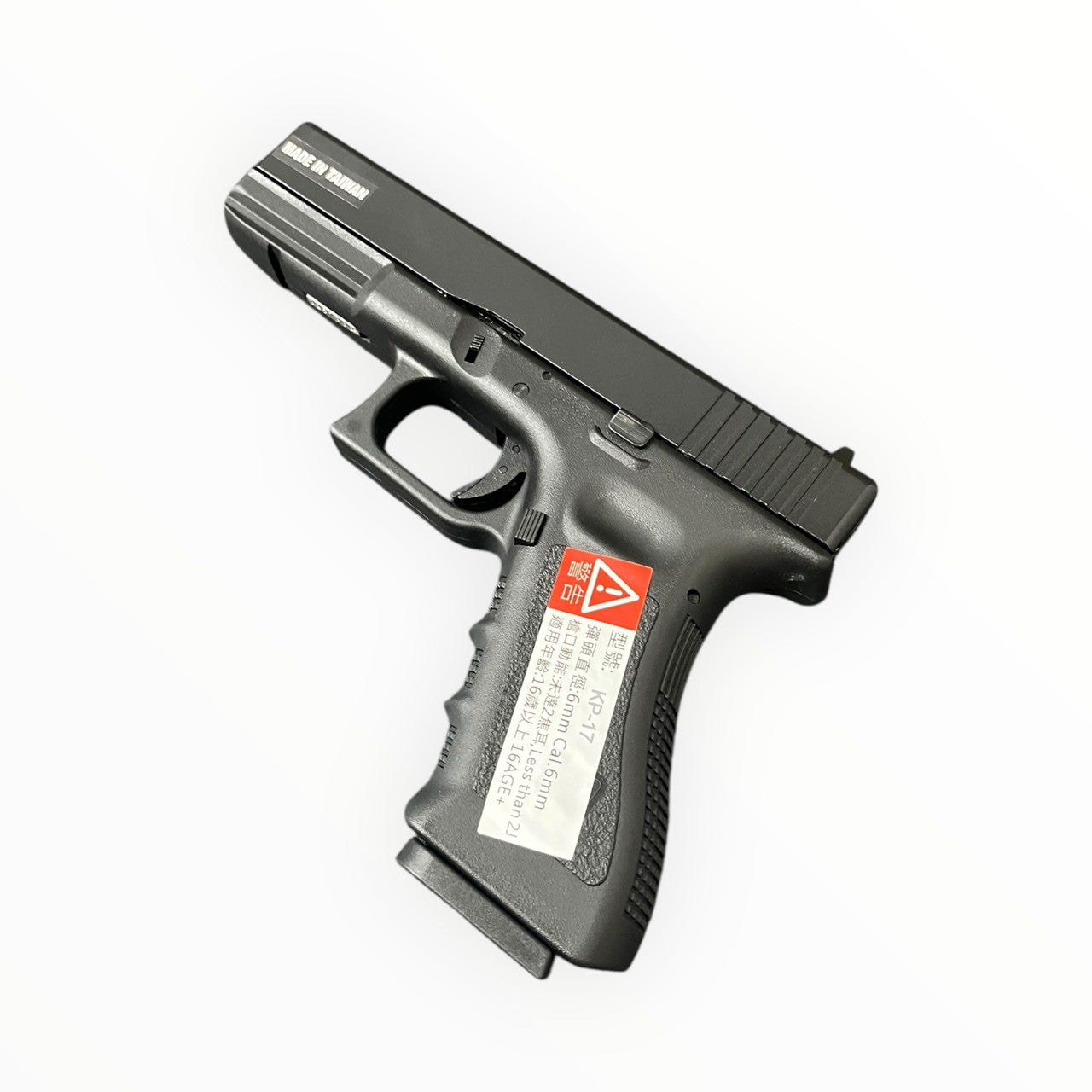 半金屬構造(鋁合金滑套 + ABS 下身),滑套與槍管陽極處理非噴漆。具滑軌可安裝槍燈或雷射,滑套可動、具後座力並有滑套後定與保險設計。可選瓦斯或 CO₂ 動力,適用生存遊戲、訓練或收藏。請遵守當地法規與場地規定。