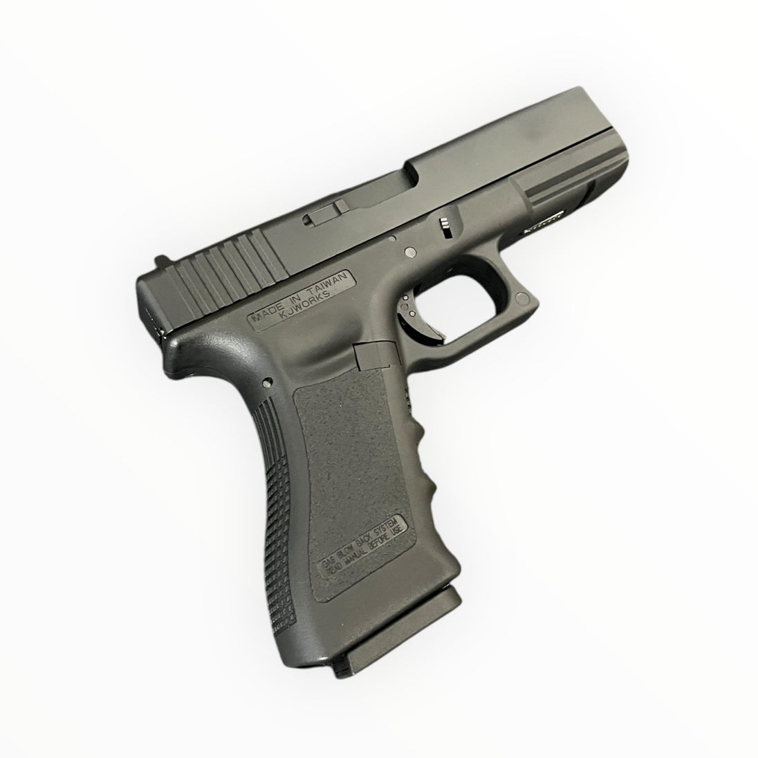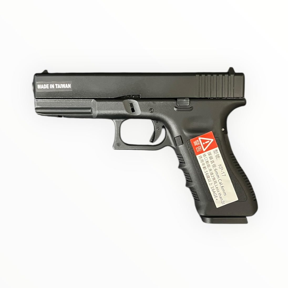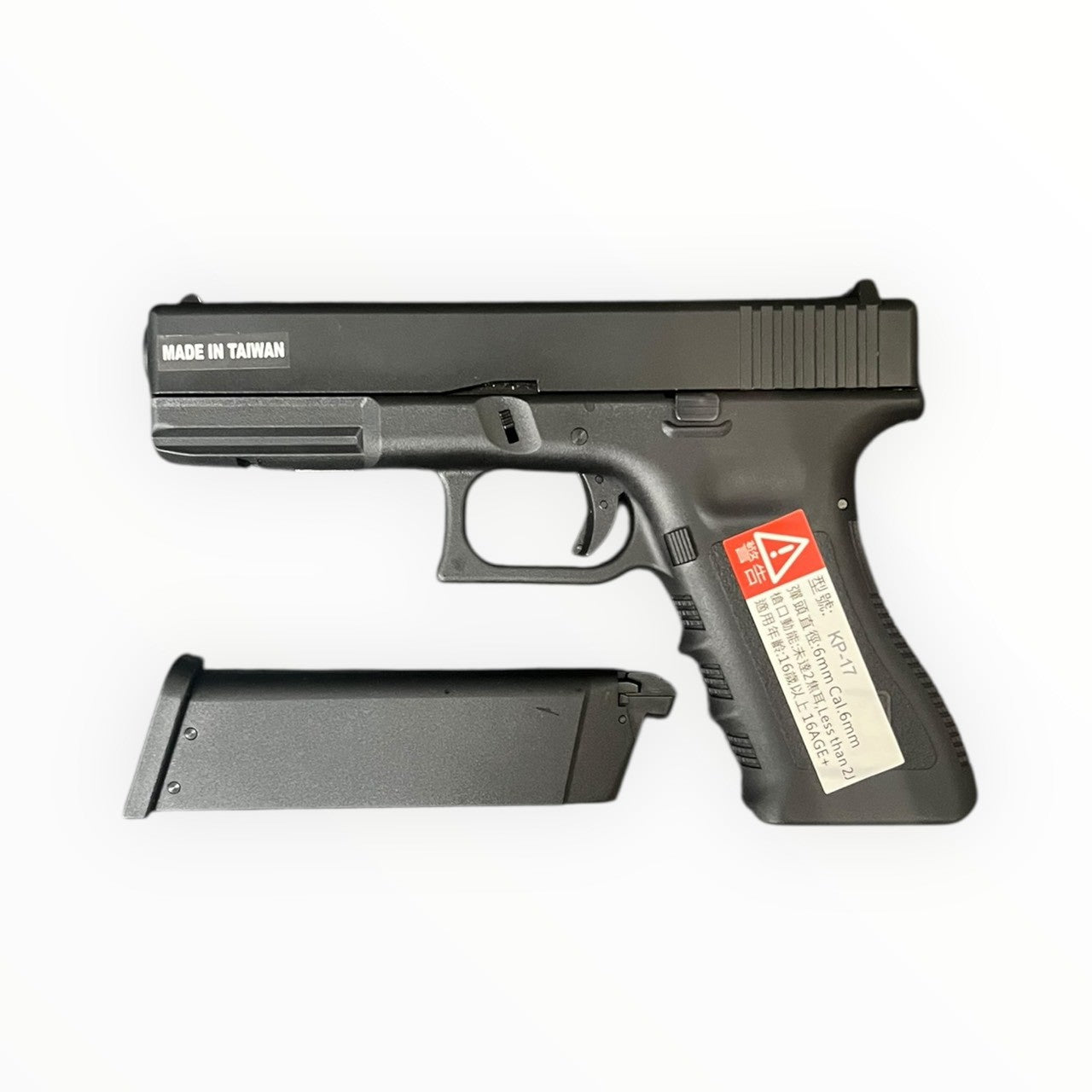 半金屬構造(鋁合金滑套 + ABS 下身),滑套與槍管陽極處理非噴漆。具滑軌可安裝槍燈或雷射,滑套可動、具後座力並有滑套後定與保險設計。可選瓦斯或 CO₂ 動力,適用生存遊戲、訓練或收藏。請遵守當地法規與場地規定。