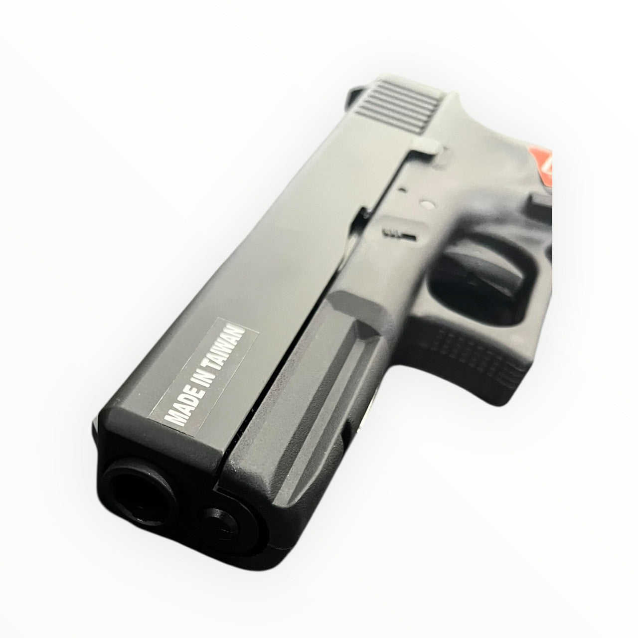 • 特色 / Features: 滑軌可裝槍燈/雷射、滑套後定、擬真後座力、保險設計 / Picatinny rail, slide-lock on empty, realistic recoil, safeties