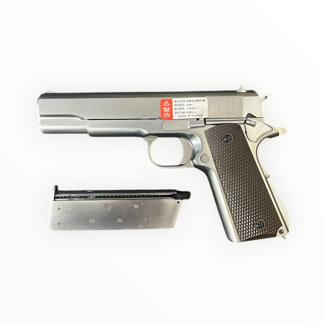 WE M1911 鍍鉻銀軍版 全金屬瓦斯手槍 — 銀色