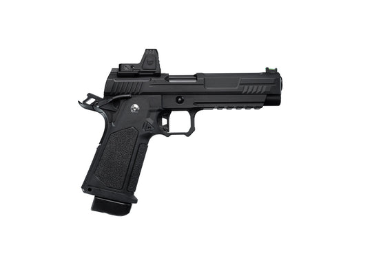 ARCTURUS ARCTURUS Hi-Capa 5.1 6mm 紅點版 GBB 瓦斯手槍 準心國際 LINE 官網 👉 https://lin.ee/bAqmYEC ARCTURUS Vanguard Hi-Capa 系列專為休閒射手與競技玩家打造結合強力瓦斯反衝動作與大膽幾何外型設計採用固定式精密內管、光纖準星與大量鋼製零件配置在穩定性、耐用度與射擊手感上全面升級具備優異的氣體效率與高度升級相容性,適合各階層射手使用 產品特色 採用固定精密內管設計,提升射擊準確度相容 TM 規格零組件,組件相容性達到 100%,單零件相容性超過 80%擊錘組件、雙面保險、彈匣扣、空倉掛機等超過 10 個零件使用 MIM 鋼件針對槍管、滑套與機匣進行結構優化,提升整體可靠性與耐用度 採用 PCP 氣槍等級精密加工與密封工藝彈匣與氣嘴進行多項氣密性優化搭載獨家 ENT™ 工藝全鋼內管,提升射擊精度與初速穩定性 雙邊操作設計,彈匣釋放鈕與操作件可左右手使用彈匣嘴、彈匣頂推器與彈匣底蓋採用 SEFP 工程材料兼具 POM...Prix normal $5,544.00Prix normal $5,544.00 -