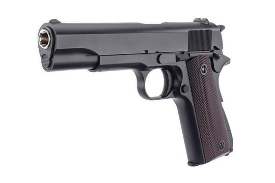 Golden Eagle 金鷹 1911 3305 Marui 規格 瓦斯短槍 手槍型號:1911(3305)準心國際 LINE 官網👉 https://lin.ee/bAqmYEC 產品特點 同 KJ、WE 規格,維修保養便利 金屬滑套、槍管、槍身 高強度聚合物握把片 全 CNC 製成鋁合金滑套,上下身公差緊密 不跌管結構,射擊性能更加穩定 虎口保險設計 拇指保險(需於擊槌待發位置時啟用) 滑套射擊自動復位,具無彈後定功能 相容市面多數 1911 零件與彈匣(Marui 規格) 產品規格 品牌:Golden Eagle 原廠編號:3305 口徑:6mm 動力:瓦斯 初速:約...Prix normal $2,710.00Prix normal $2,710.00 -