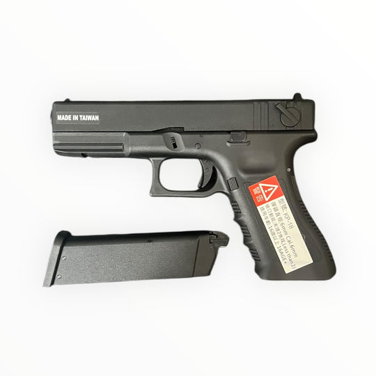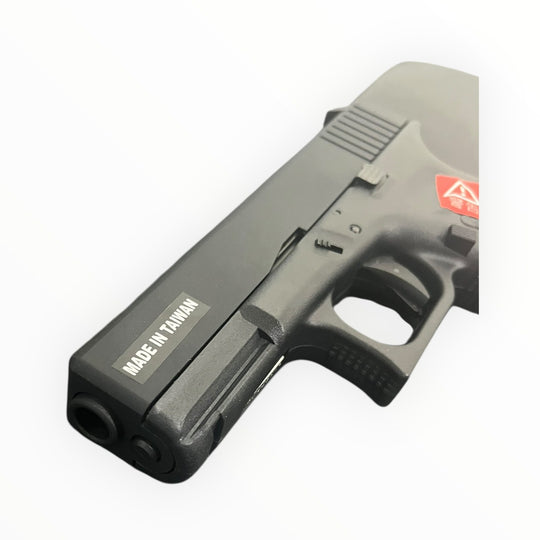 WE G18 單連發版 瓦斯手槍 — 金屬滑套 WE G18 Single-Fire Gas Pistol 中文說明:WE G18 單連發版,金屬滑套與金屬外管,具仿真後座力與滑套可動設計。可調式 HOP-UP、退彈孔與滑套後定,操作擬真。適合生存遊戲、訓練或收藏。使用與運輸請遵守當地法規與場地規定。 English Description:WE G18 single-fire model with metal slide and metal outer barrel for realistic blowback. Adjustable hop-up, ejection port, and slide-lock on...Prix normal $1,990.00Prix normal $1,990.00 -