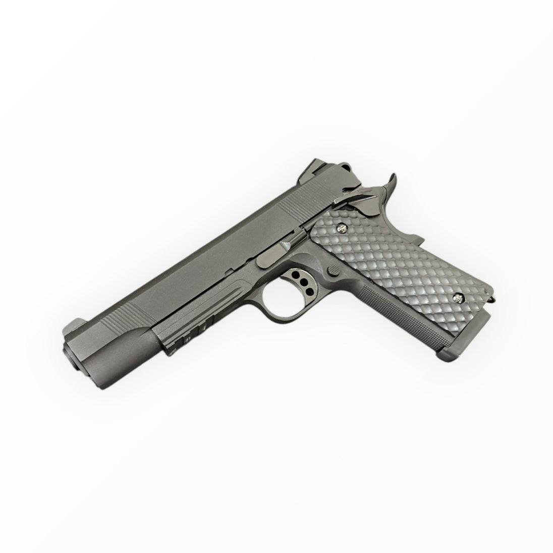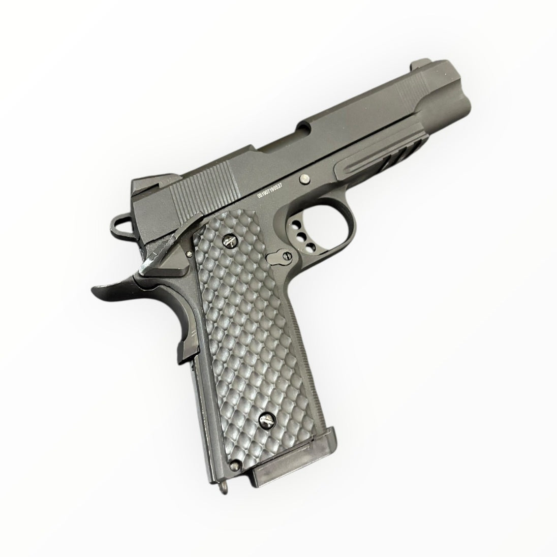 Realistic 1911 compact gas pistol with lightweight aluminum slide and powder-coated finish. Dual-system compatible with gas or CO₂ magazines; smooth slide and excellent shooting feel. Suitable for airsoft, training, props, or collecting. Always follow local laws and field rules.
